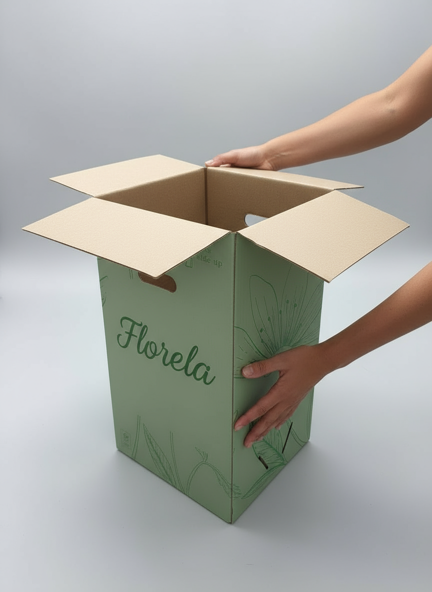 Nuestra caja está fabricada con cartón rígido de alta resistencia, especialmente diseñada para proteger las flores de golpes y movimientos durante el transporte.