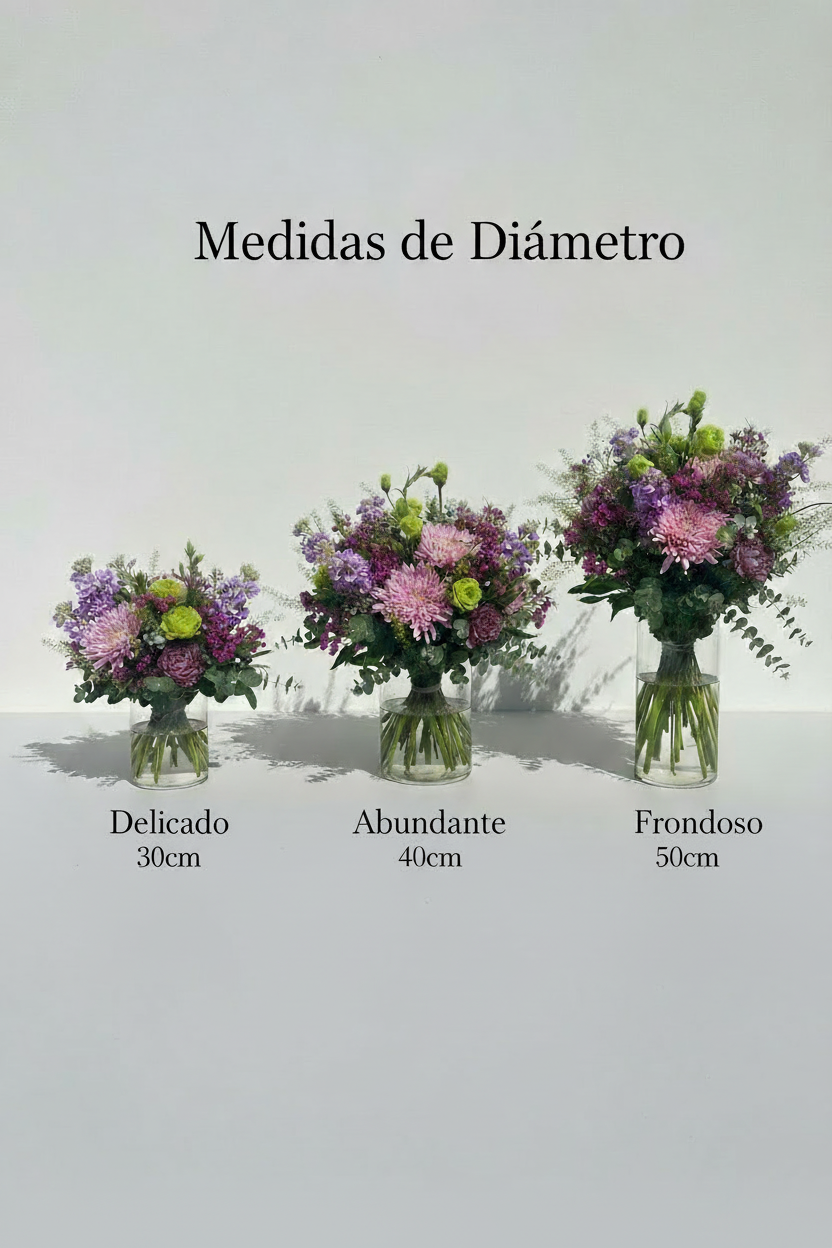 Nuestros ramos se elaboran siempre con flores frescas y de la mejor calidad. Ten en cuenta que, dependiendo de la temporada y la disponibilidad, algunas variedades pueden ser sustituidas por otras similares, respetando siempre el estilo, la armonía y el valor del diseño original.