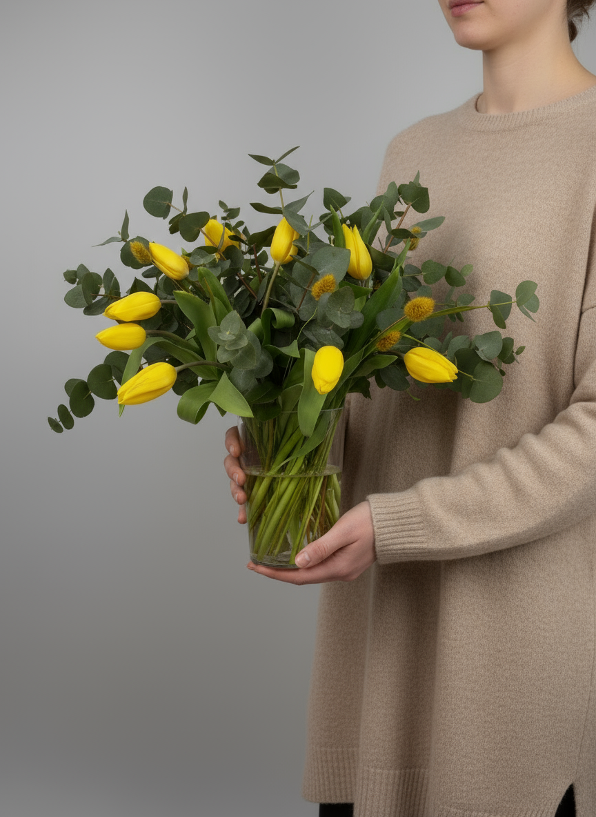 El ramo de tulipanes amarillos es una explosión de luz y energía