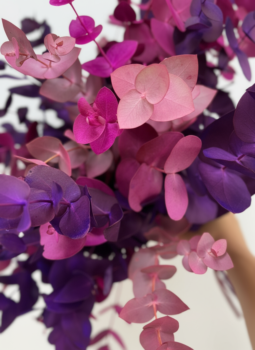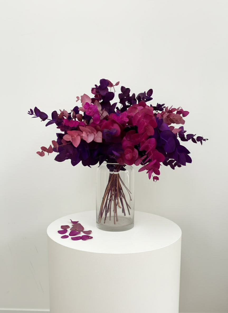 El Ramo Aurora Preservado de Florela es una explosión de color y estilo. Compuesto por eucalipto preservado en tonos fucsia y morado, combina elegancia y personalidad en un diseño que ilumina cualquier estancia.